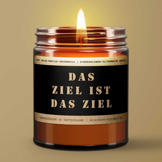 Motivations-Botschaft Kerze "Das Ziel ist das Ziel" Duft: Feige-Vanille-Zedernholz
