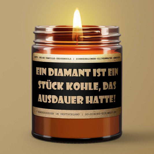 Motivations-Botschaft Kerze "Ein Diamant ist ein Stück Kohle, das Ausdauer hatte" Duft: Feige-Vanille-Zedernholz