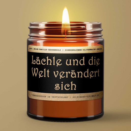 Motivations-Botschaft Kerze "Lächle und die Welt verändert sich" Duft: Feige-Vanille-Zedernholz