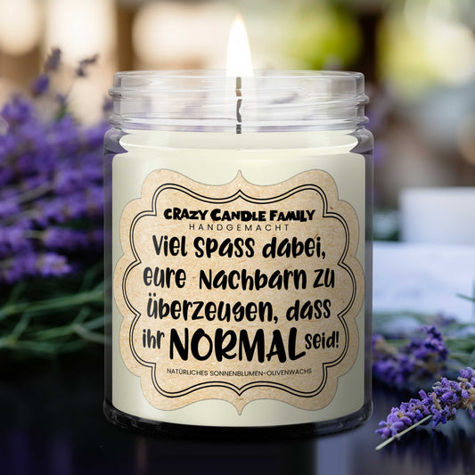 Viel Spass dabei, eure Nachbarn zu überzeugen, dass ihr normal seid Kerze Einweihung für Freunde neues Zuhause neues Haus Umzug Geschenk